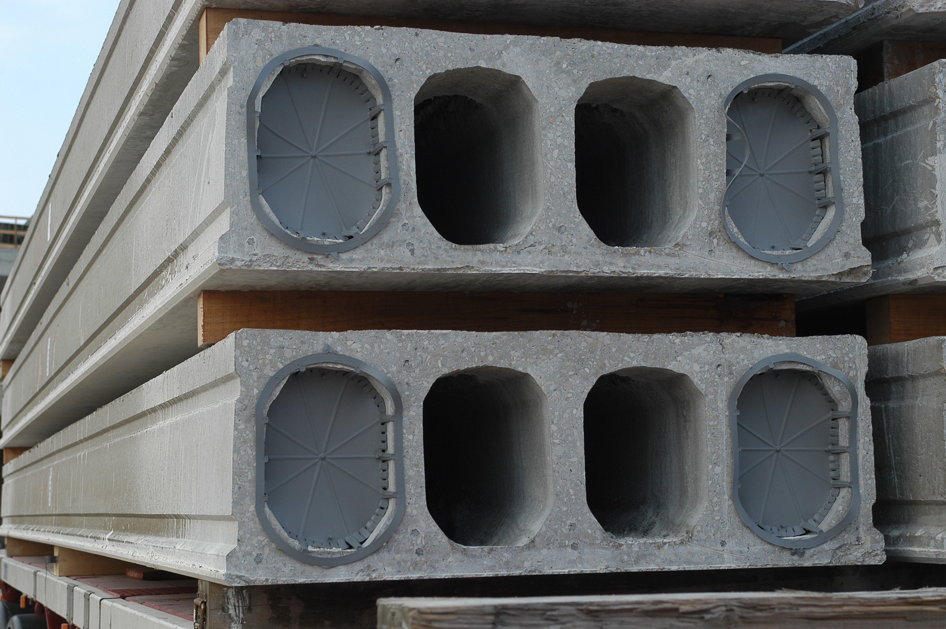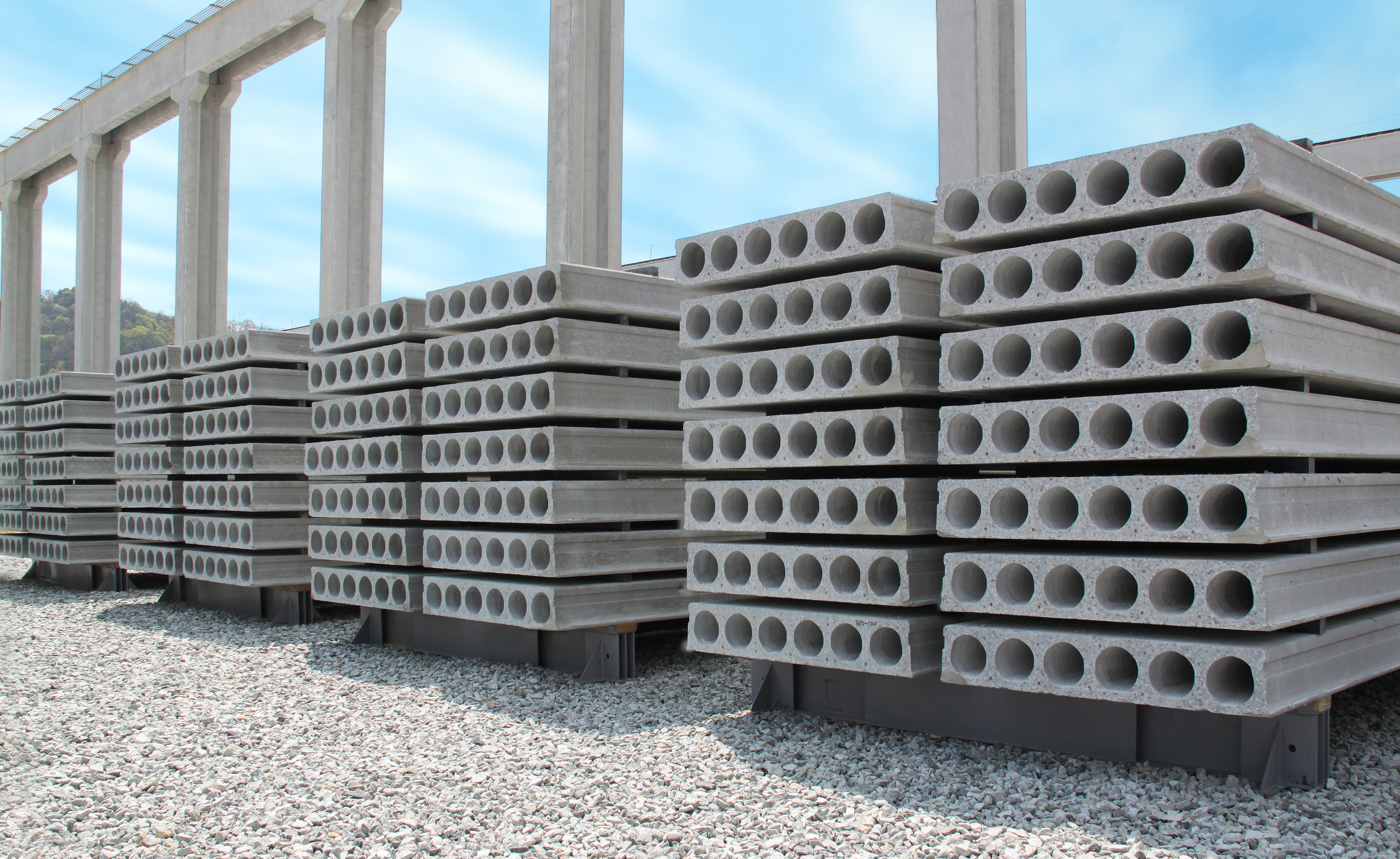 The Hollow Core slab is a Precast Prestressed Concrete Slab with tubular voids which run through the full length of the slab, thereby reducing the weight of the unit. With the benefit of prestressing and low self weight, longer spans can be achieved for the same loads or greater loads for the same slab height.