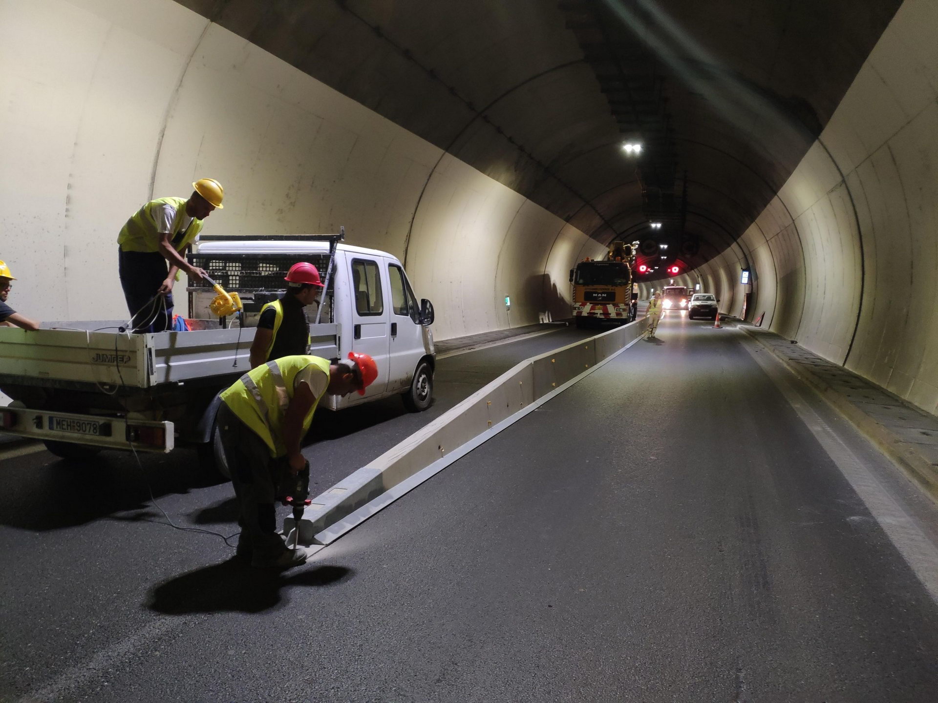 Привремени бетонски безбедносни бариери, сертифицирани според EN 1317-2, DeltaBloc SB 70B Slim line, беа поставени во Октомври 2019 година на Периметарскиот пат во Патра, во тунелите.