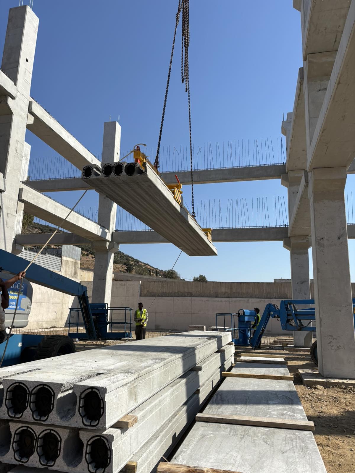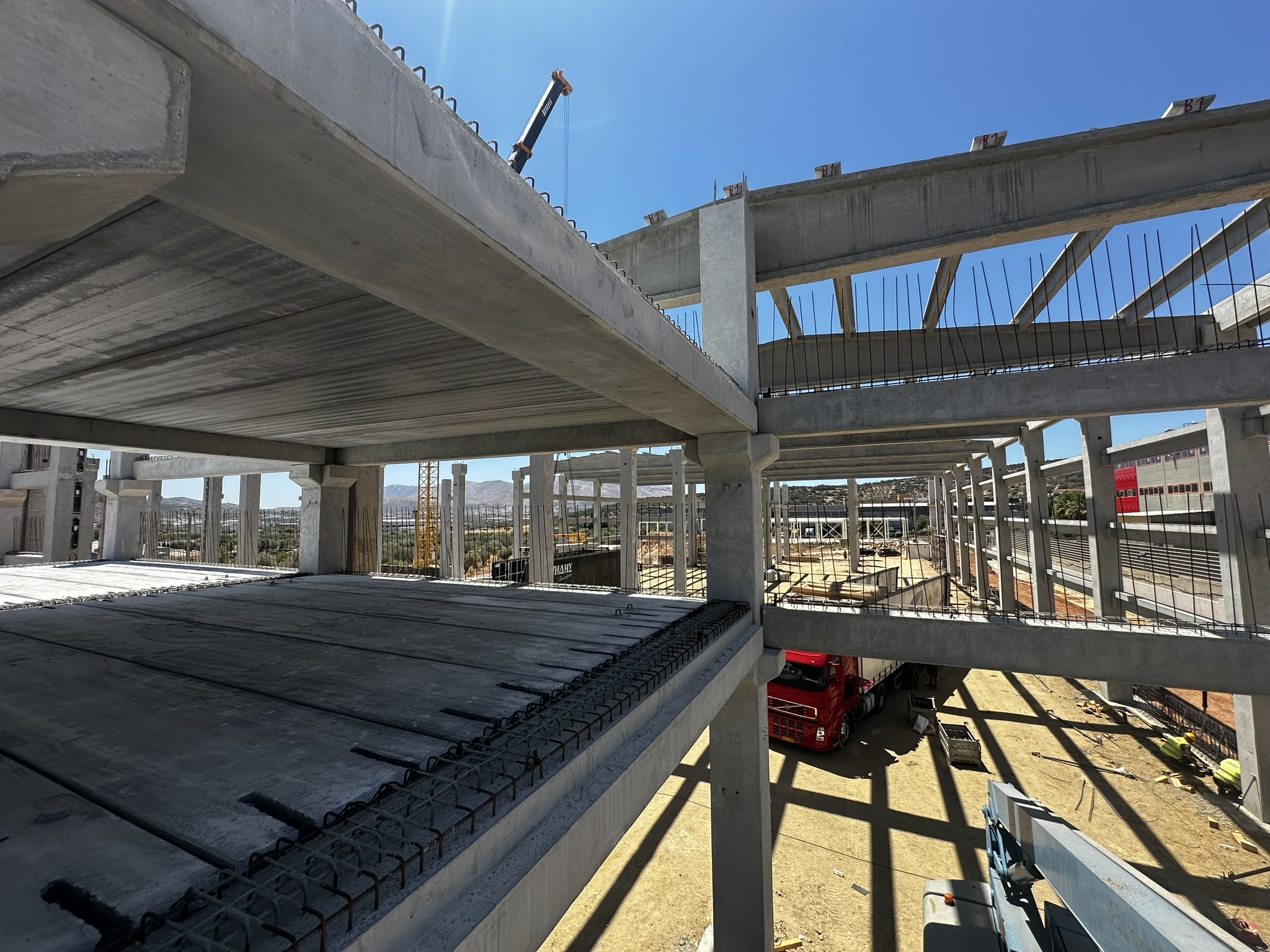 Ένα από τα κύρια χαρακτηριστικά του έργου είναι η αξιοποίηση 5.000 τ.μ. προεντεταμένων πλακών Hollow Core για την κατασκευή όλων των πλακών του κτιρίου. Οι πλάκες αυτές φέρουν φορτία άνω του 1 τόνου/μ² και καλύπτουν ανοίγματα έως 10 μέτρων, προσφέροντας ιδανικές λύσεις για βιομηχανικούς και logistics χώρους.